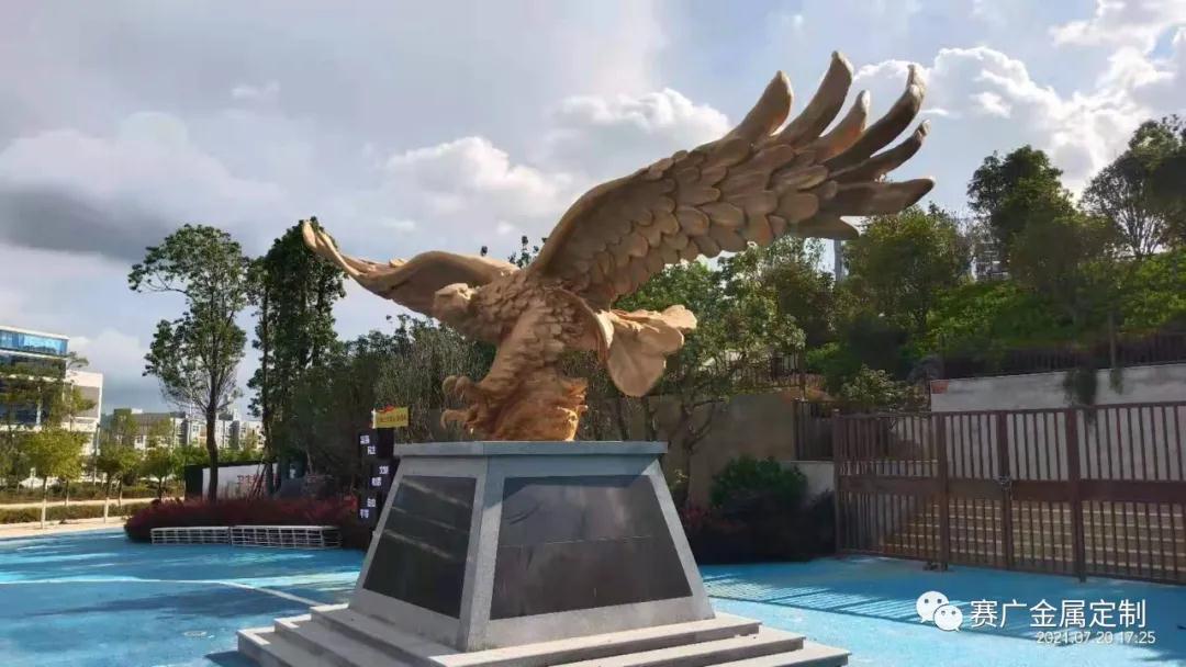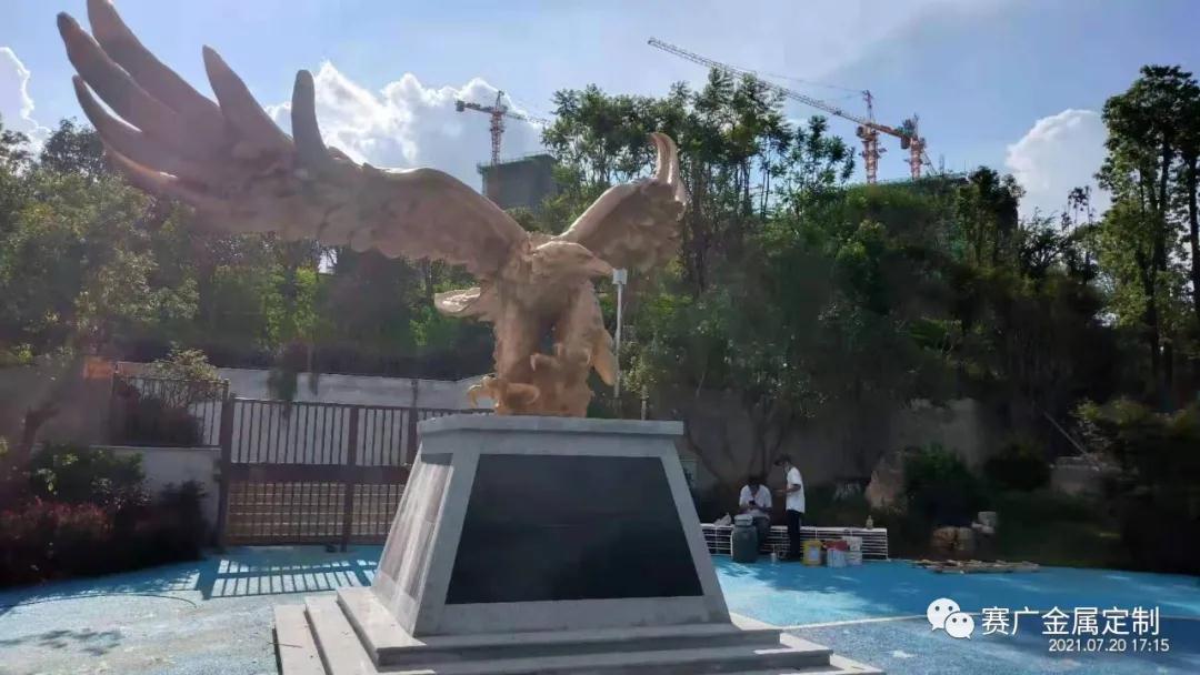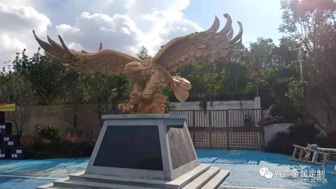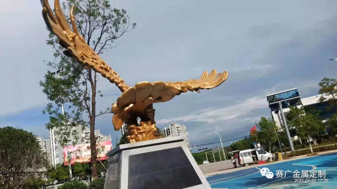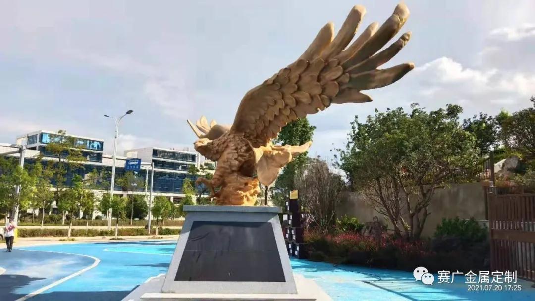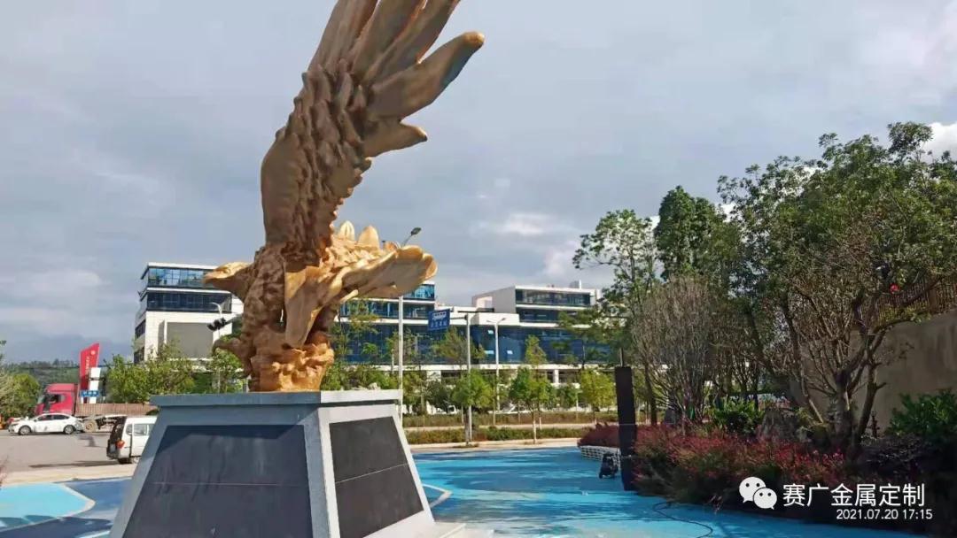 鵬在中國從古(gǔ)至今都有(yǒu)非常好的意義,寓意成功及光明前途。本(běn)次由賽廣金(jīn)屬(shǔ)為安寧售樓部定製的大鵬(péng)展翅,通過精美打磨(mó)及雕刻工藝,使整(zhěng)個大鵬(péng)雕塑氣勢雄(xióng)偉,栩(xǔ)栩(xǔ)如生。每支羽毛都透露(lù)著靈動,頭眼(yǎn)彰(zhāng)顯(xiǎn)力道(dào),深得客戶(hù)滿意。