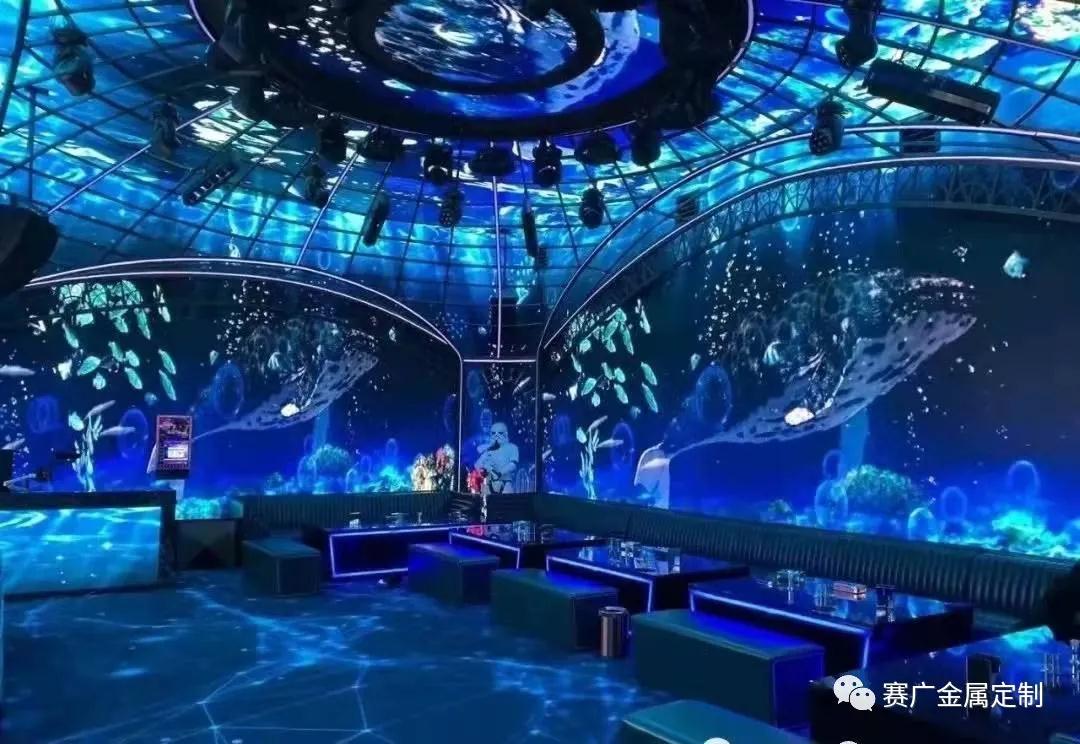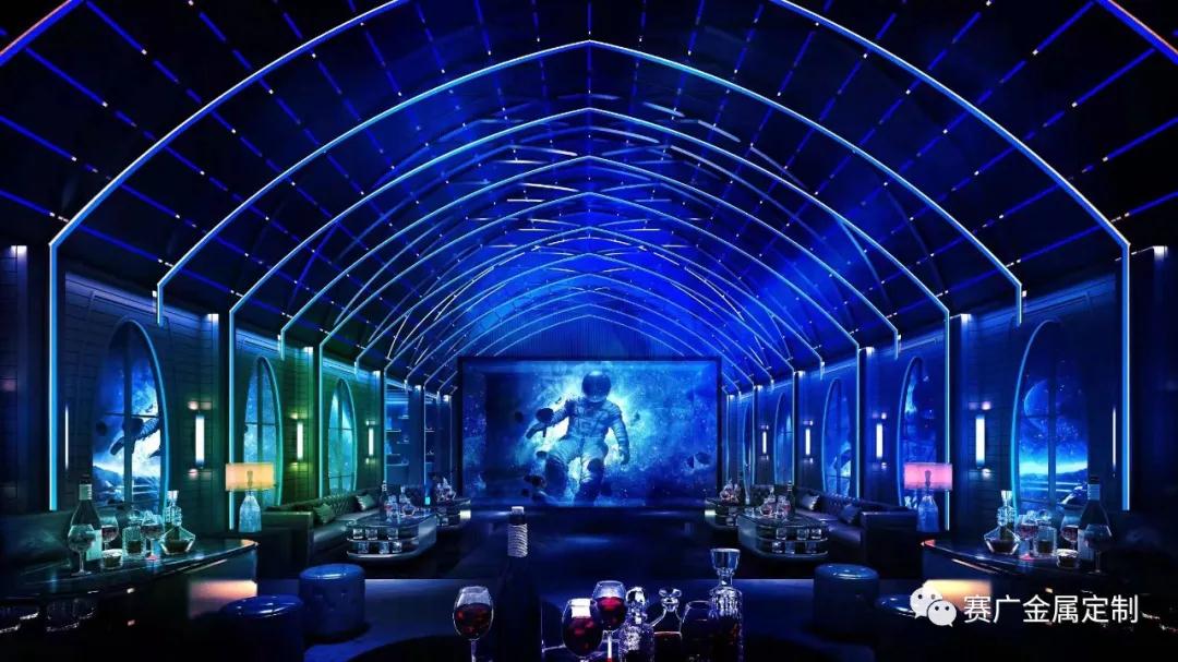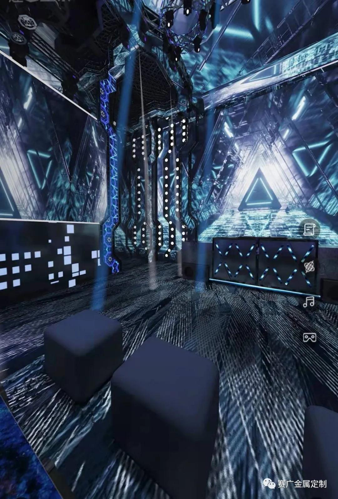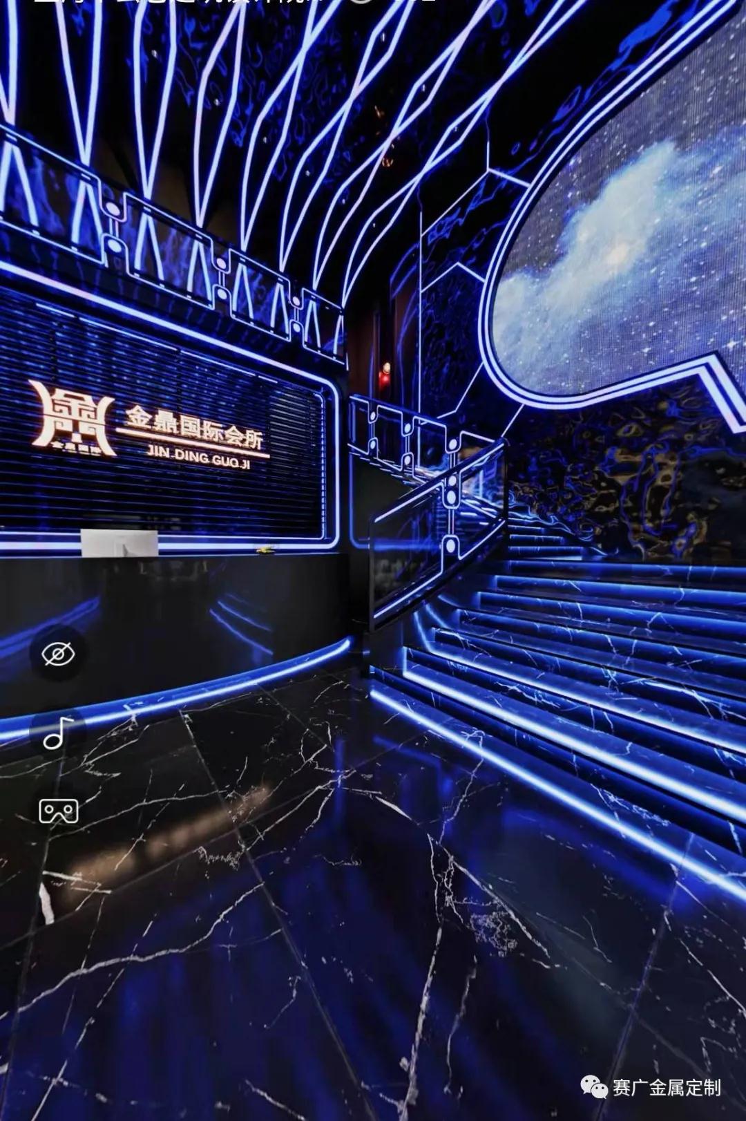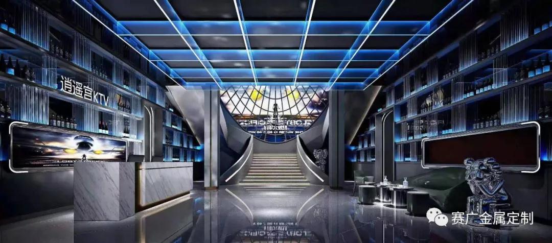 孟波逍(xiāo)遙宮(gōng)KTV是賽廣合作(zuò)眾多KTV的案例之一,金屬的加(jiā)入,讓裝飾(shì)效果(guǒ)更為酷(kù)炫,錯落有致的空間感,更具有現代氣息。