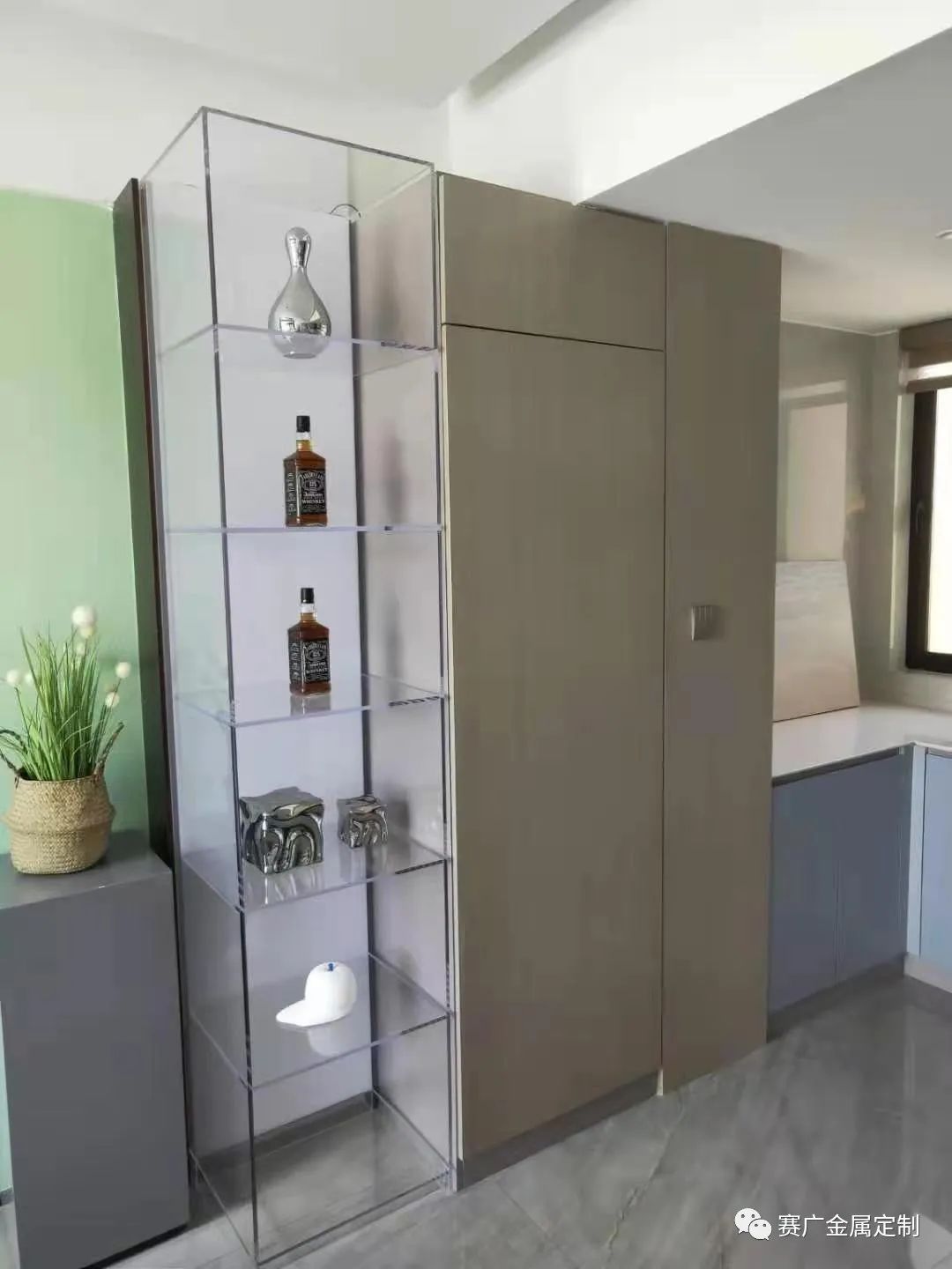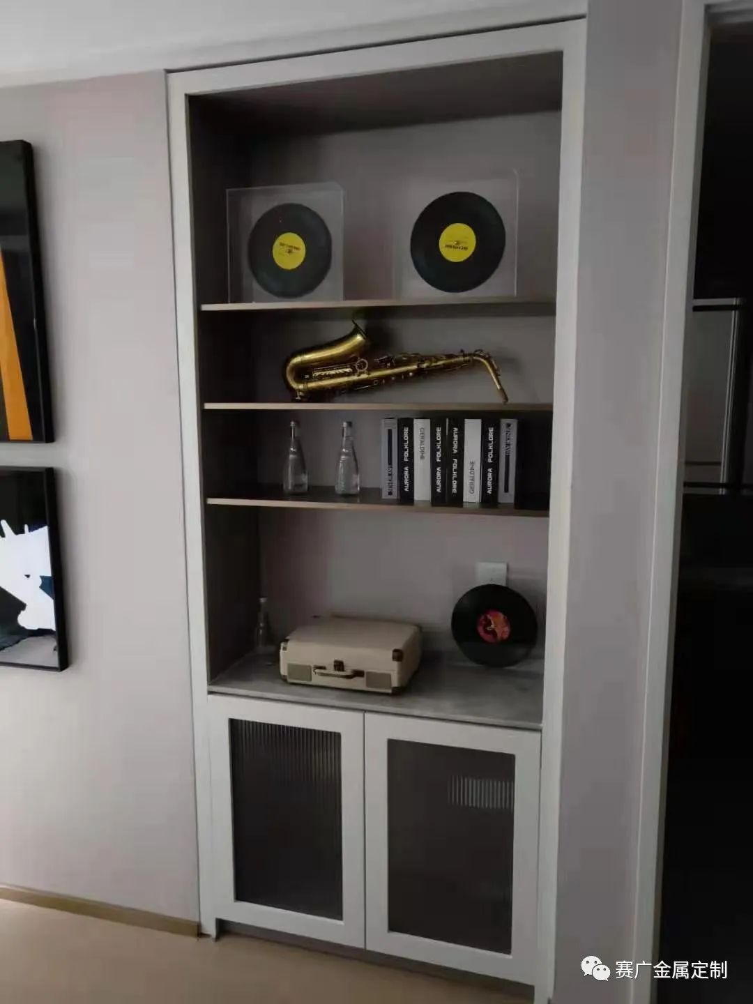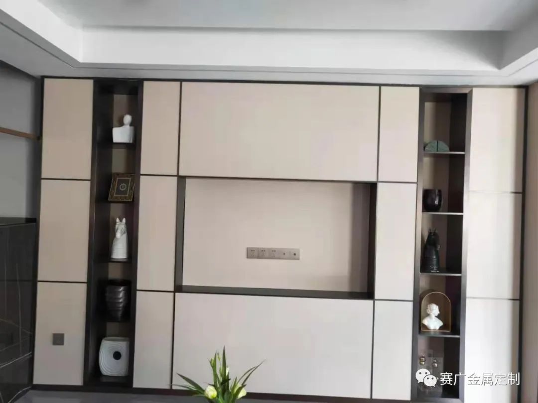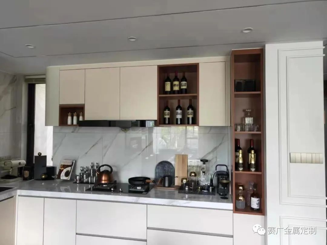 金屬櫃體(tǐ)融入暖色燈光,讓空間氛圍更為柔和溫馨,瞬間(jiān)拉滿(mǎn)家的感覺。