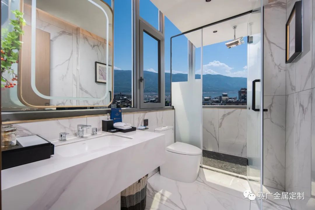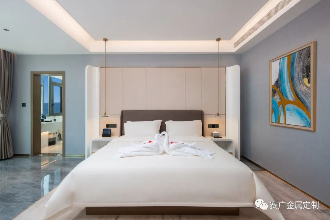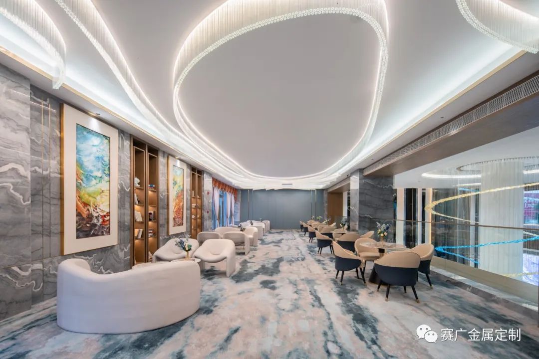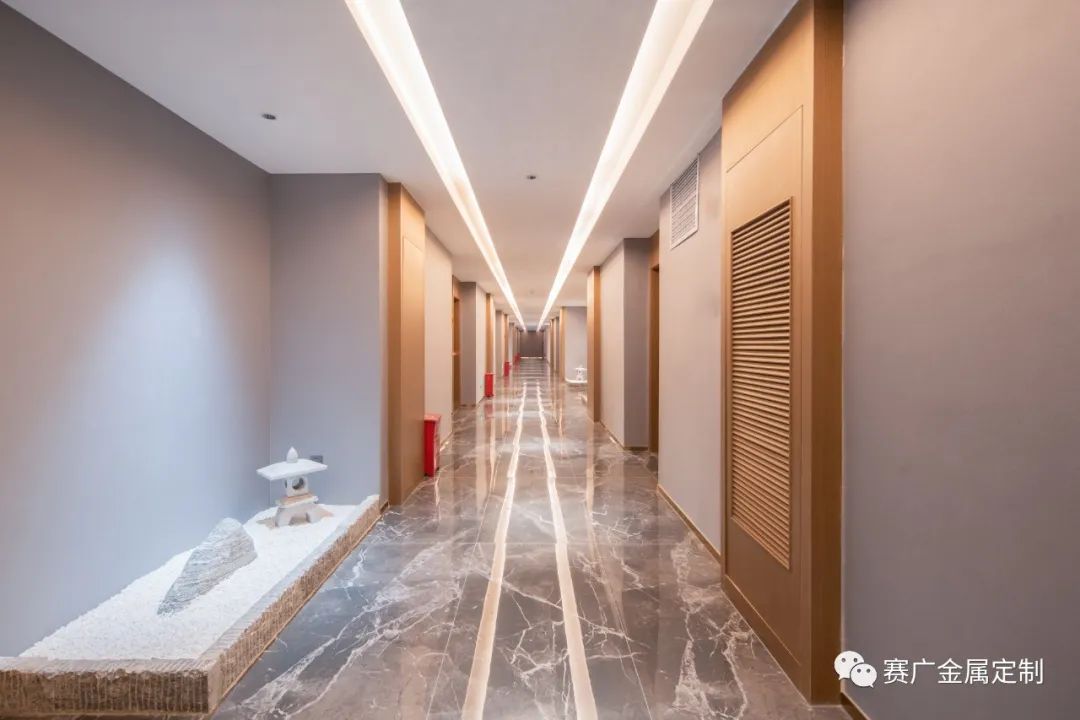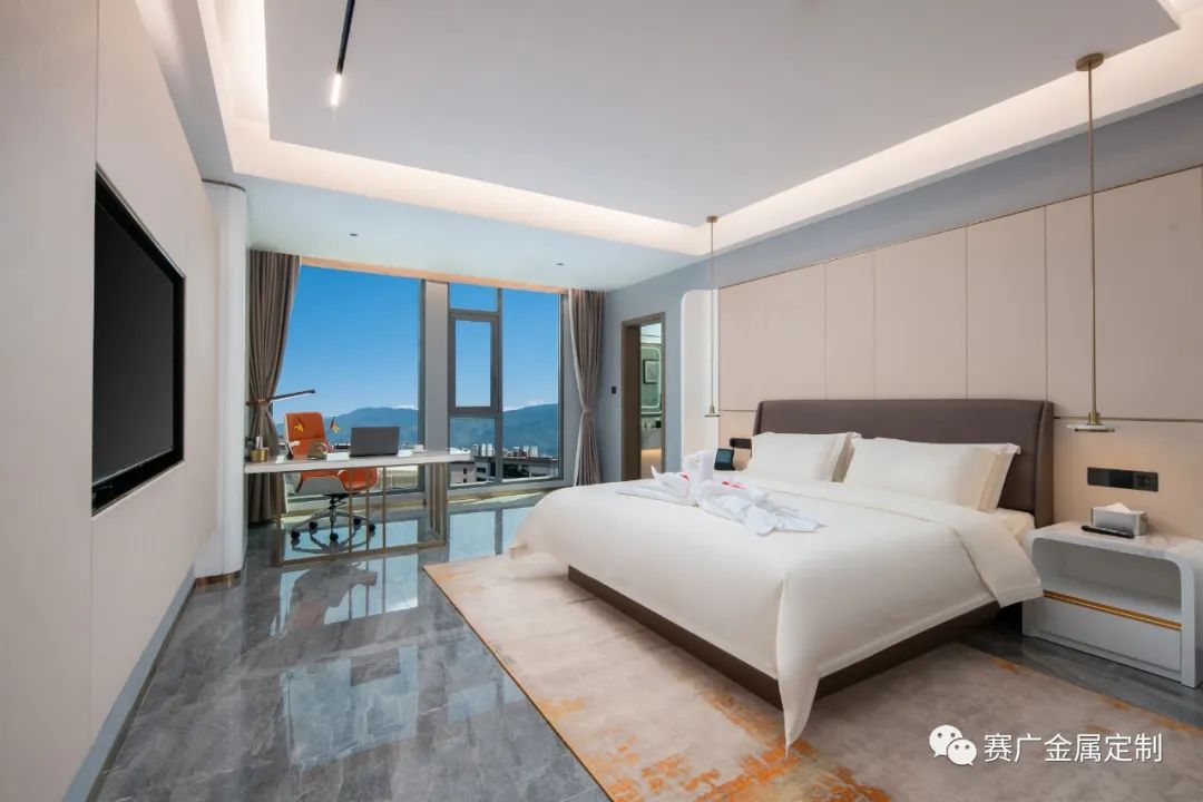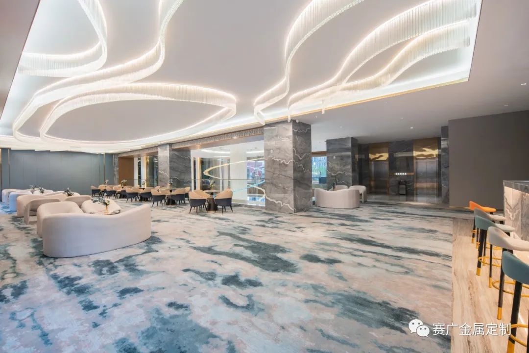 賽廣.京豐(fēng)源不鏽鋼自成立(lì)以來,前後參與了70餘家酒店金屬部分的裝飾裝修,其(qí)中龍禧酒(jiǔ)店位於昭通巧家,是賽廣金屬2022年7月完工的(de)一家酒店裝修項目(mù),總(zǒng)金(jīn)屬造價100萬餘元,包括酒(jiǔ)櫃、屏風、茶幾(jǐ)、鏡子、各區域線(xiàn)條、包板,藝術玻璃等。
