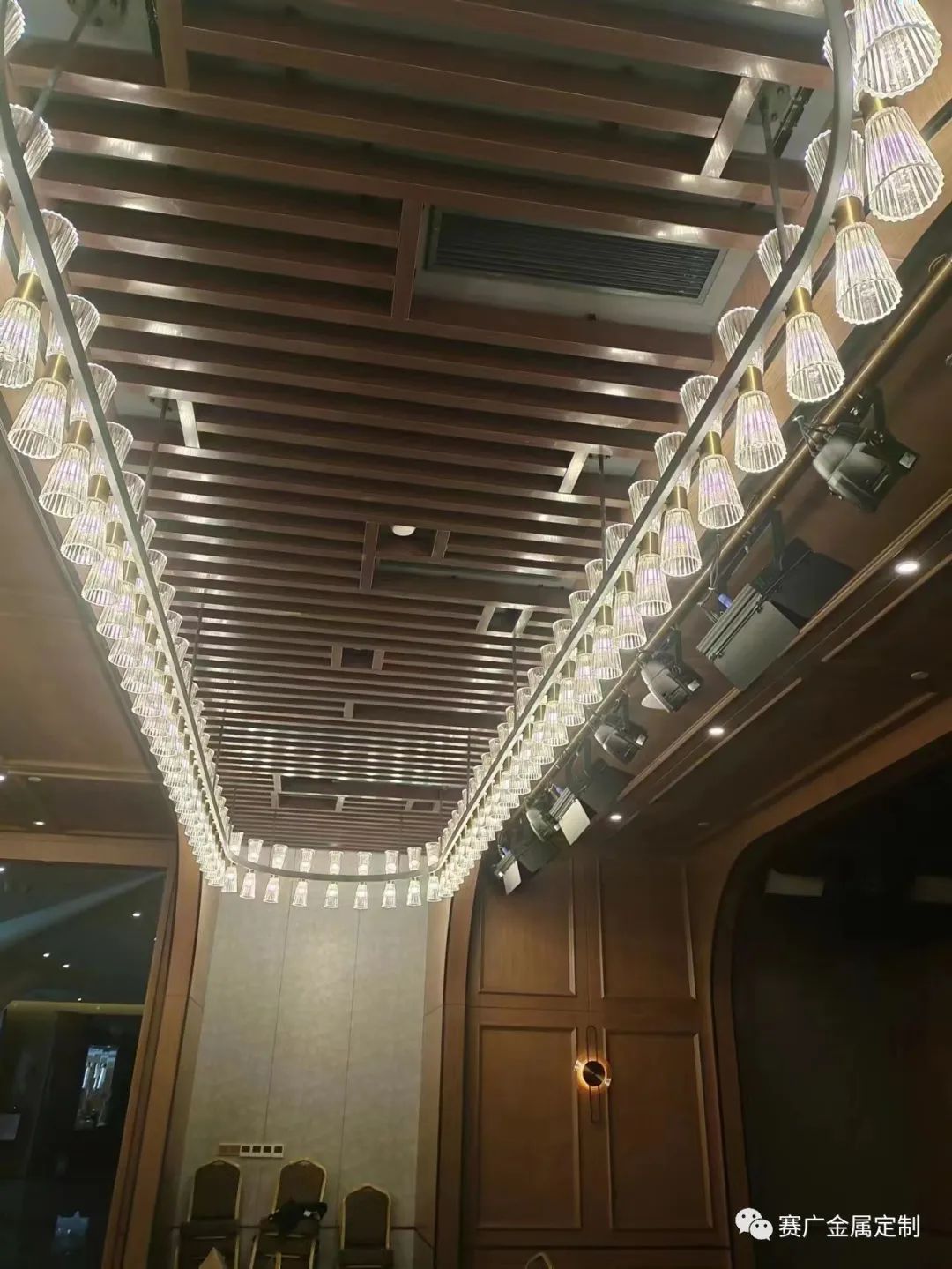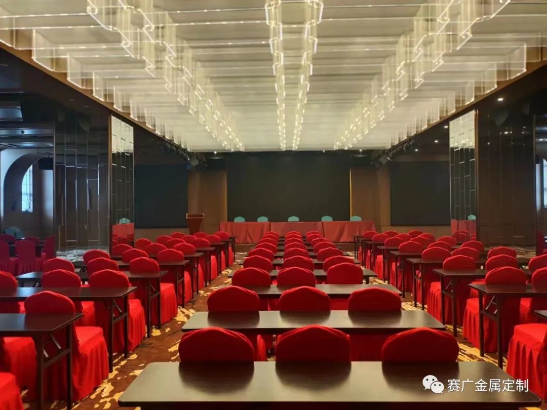 金屬最大的特點是(shì)色彩豐富(fù)的同時,可以很好的與燈光融合折射,效果(guǒ)事半功倍,覆蓋麵大,氛(fēn)圍感突出。