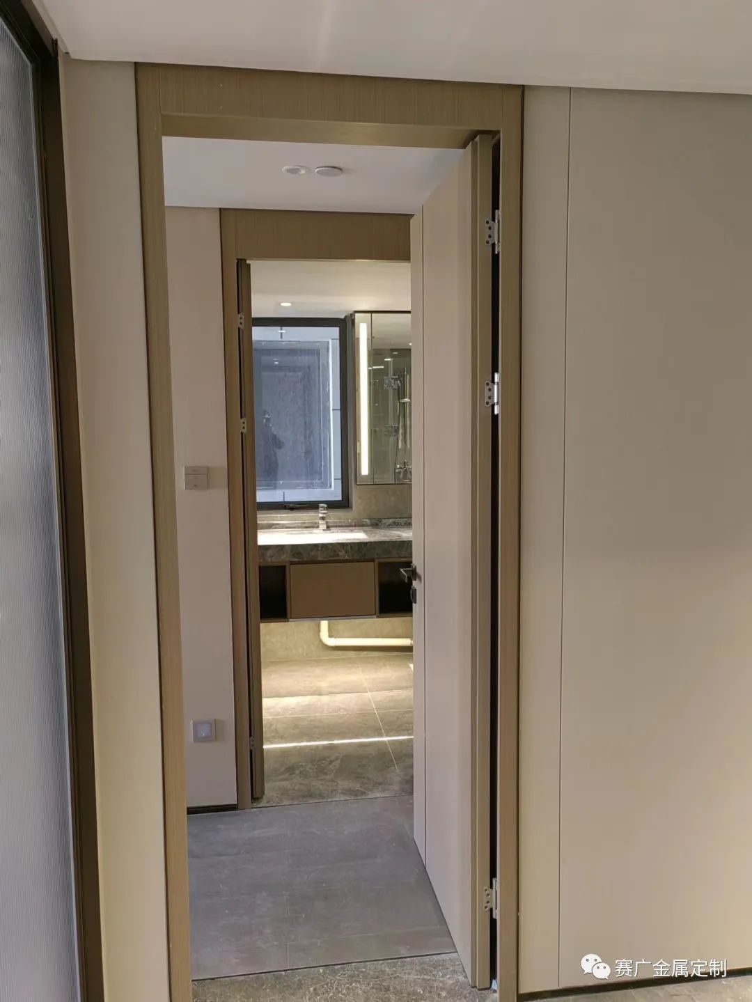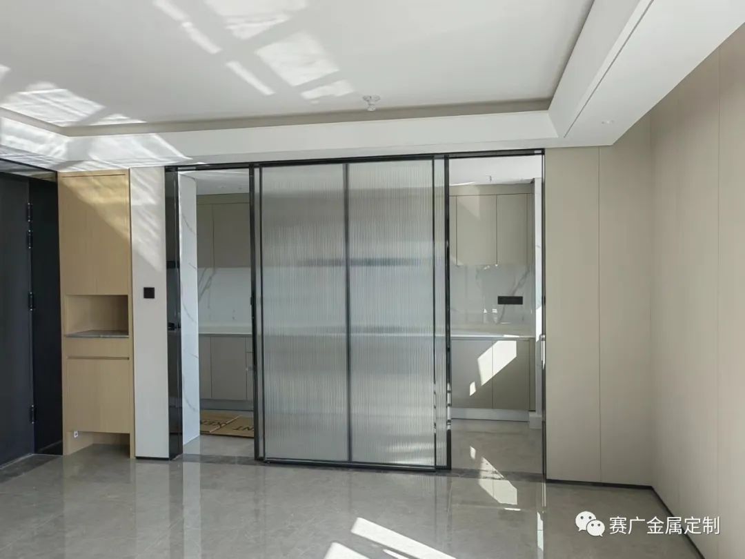 金(jīn)屬(shǔ)線條的門框簡易、硬朗,同(tóng)時相對於過(guò)道中,更為實用,不易破損。