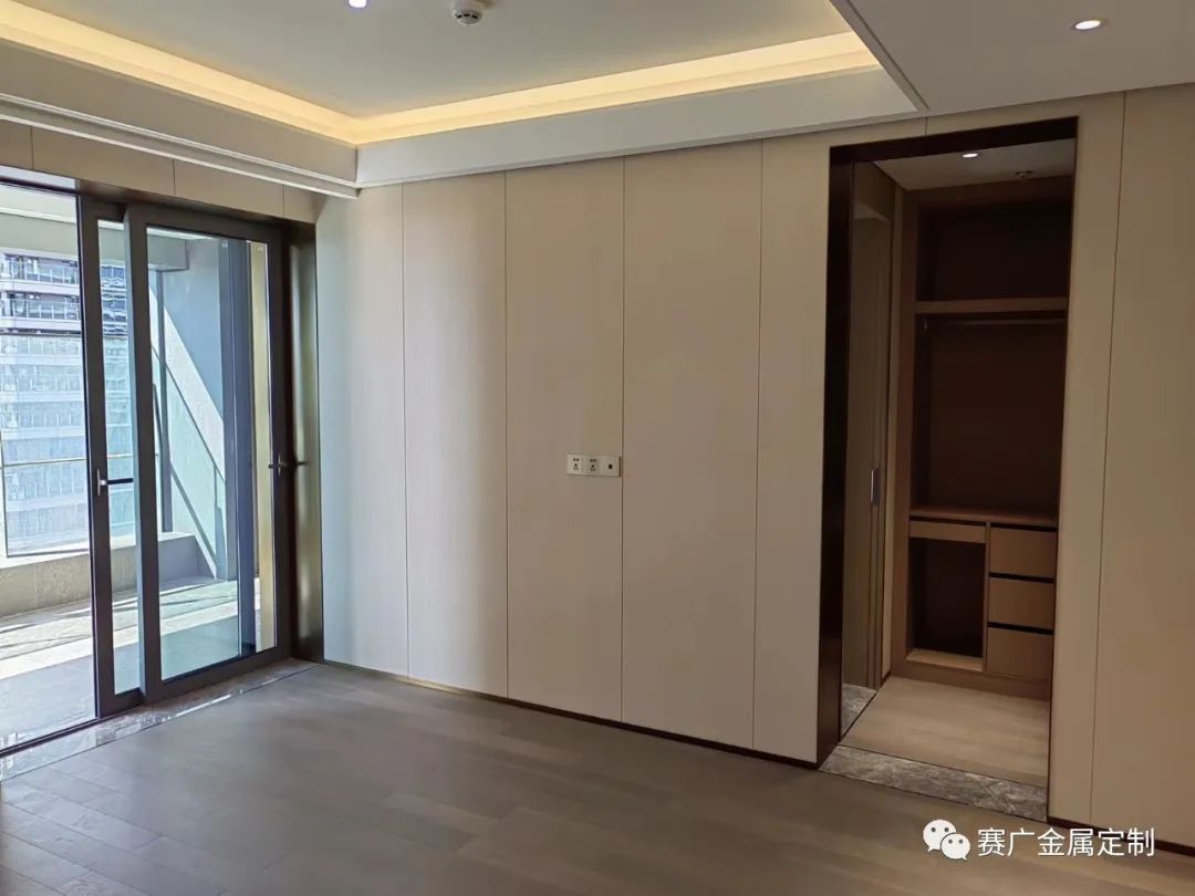 推拉門、玻璃衣櫃是當(dāng)下時新裝修的寵兒,相較於一般木質感的門板,玻璃與金屬門的結合更(gèng)為通透及(jí)輕(qīng)盈,摒棄木質感的沉悶呆板。