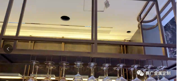 深(shēn)棕色(sè)酒(jiǔ)杯掛(guà)架配以燈光,溫馨至極,既節省空間又拉伸視覺感。