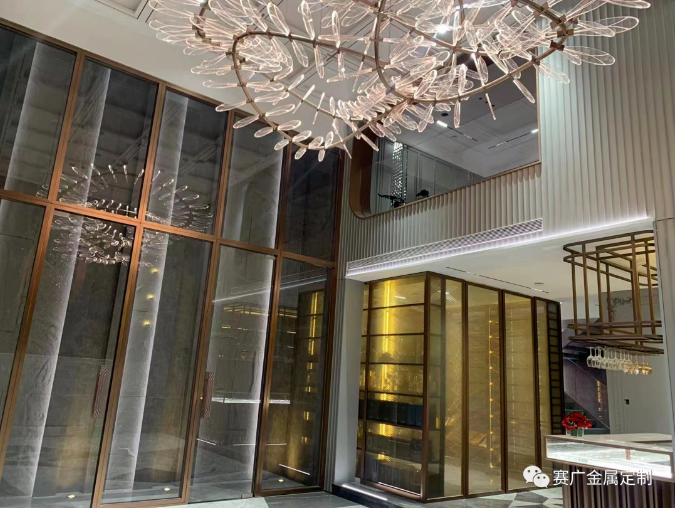 春城首府(fǔ)項目位於滇池國家旅遊度假區的滇池一線位置,湖濱路與觀景路交叉口,海埂公園西側,其周(zhōu)邊配套全方位醫療、教(jiāo)育、和商業體係,旅遊度假絕佳。賽廣作為金屬裝飾行業的佼佼者,憑借過硬的實力與口碑參(cān)與到此處建設,別墅內部運用大量金屬元素,使整體效果呈現更具質感和柔(róu)和度。