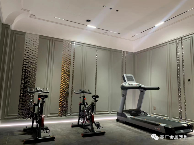 健身房拚接水波紋牆板在燈(dēng)光的映照下呈(chéng)現出不同色彩,瞬間激活運動細(xì)胞,注入活力能量(liàng)。