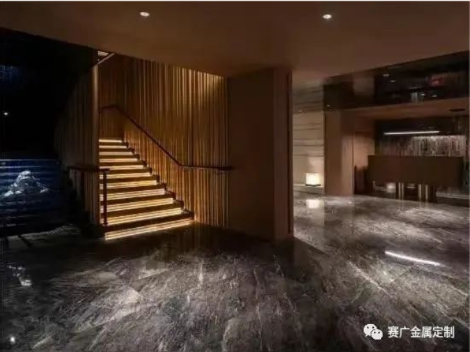 酒店內部大量使用深灰色不鏽鋼包板及線條,既實用而又突出(chū)質感。