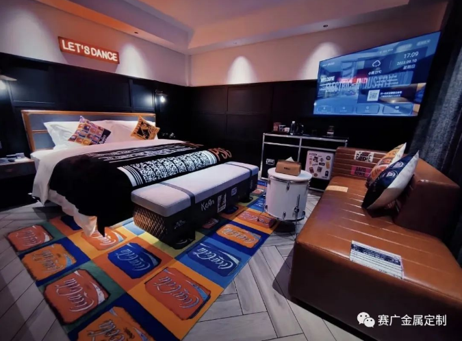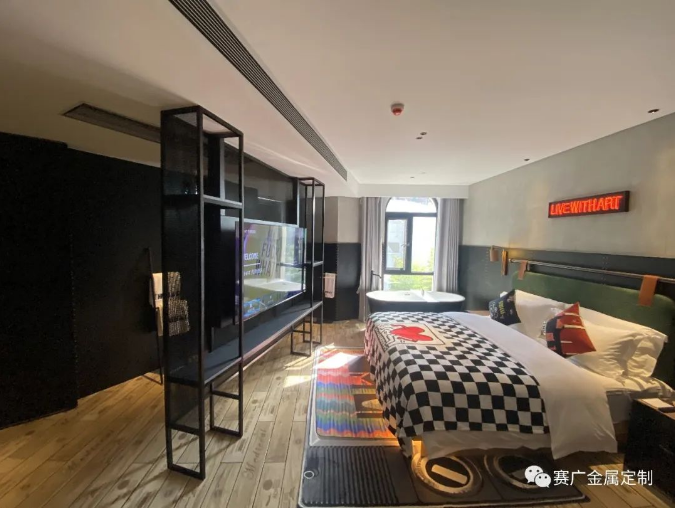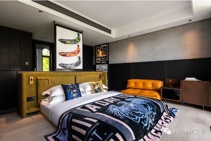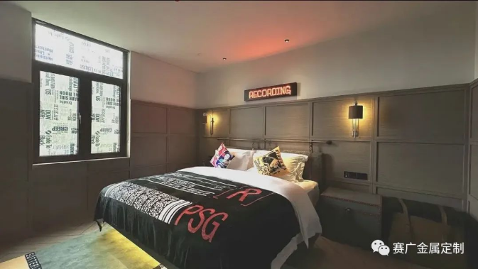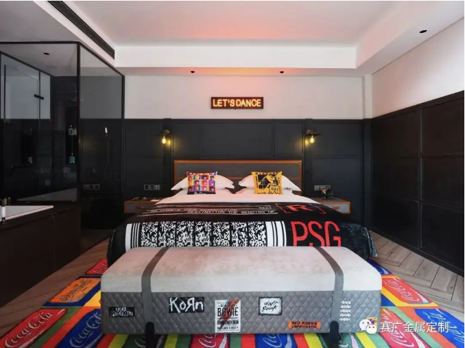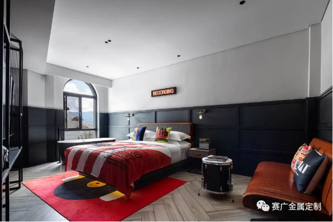 酒(jiǔ)店運用大量金色及深棕色(sè)不鏽(xiù)鋼金屬製品,與搖滾元素交相呼應,彰顯古典韻(yùn)味(wèi)。