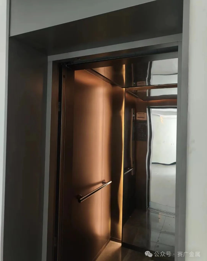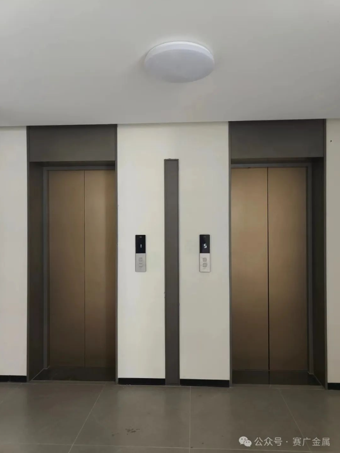 香檳(bīn)金色電梯轎廂包板營造出寧靜與淡雅的高級氛圍,給人一種簡約莊(zhuāng)重大氣的感覺。
