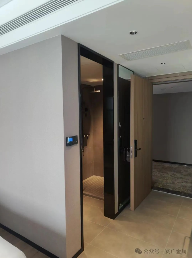 夾絲玻璃隔斷在酒店裝修中運用極(jí)其廣泛,呈(chéng)現出若即若離的即視感(gǎn),不(bú)鏽鋼線條也是恰到好處的裝飾了空間,既實用(yòng)又美觀。
