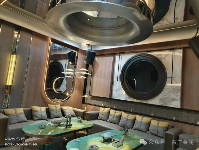 金屬具有獨特的冷(lěng)調和硬朗的質感,能增添堅韌與耐用之感,散發低調奢華的魅力,為酒吧營造出現代(dài)、時尚的氛圍。