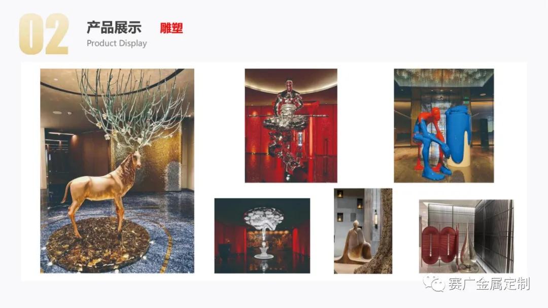 2004年至今,賽廣專注於金屬產品的自主創新,研發設(shè)計與加工安裝(zhuāng),為(wéi)國際國內星級酒店,高端會所,高端(duān)樓盤,高端別墅的整(zhěng)體(tǐ)金屬產品提供專業服務,為景觀藝術,陳(chén)設類金屬雕塑,金屬(shǔ)高端產品提(tí)供個性化定(dìng)製服務,逐漸成長為集研發,設計,生產,銷售,加工,製作與(yǔ)安裝為一體(tǐ)的不鏽鋼金屬引領和(hé)示範性(xìng)企業(yè)。