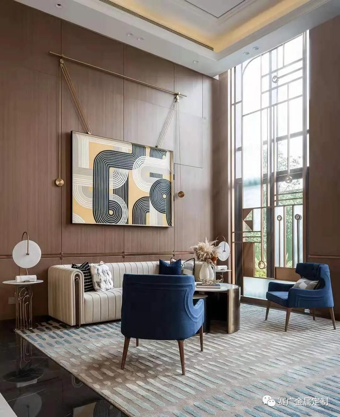 閑閑著筆,步入藝術大廳,依舊為匹配項目(mù)需要,整(zhěng)個風格植入了海派文化中經典藝術(shù)色塊與幾(jǐ)何線條的圍合鋪敘(xù),提(tí)供體(tǐ)驗當代藝術新趣的場域力量。