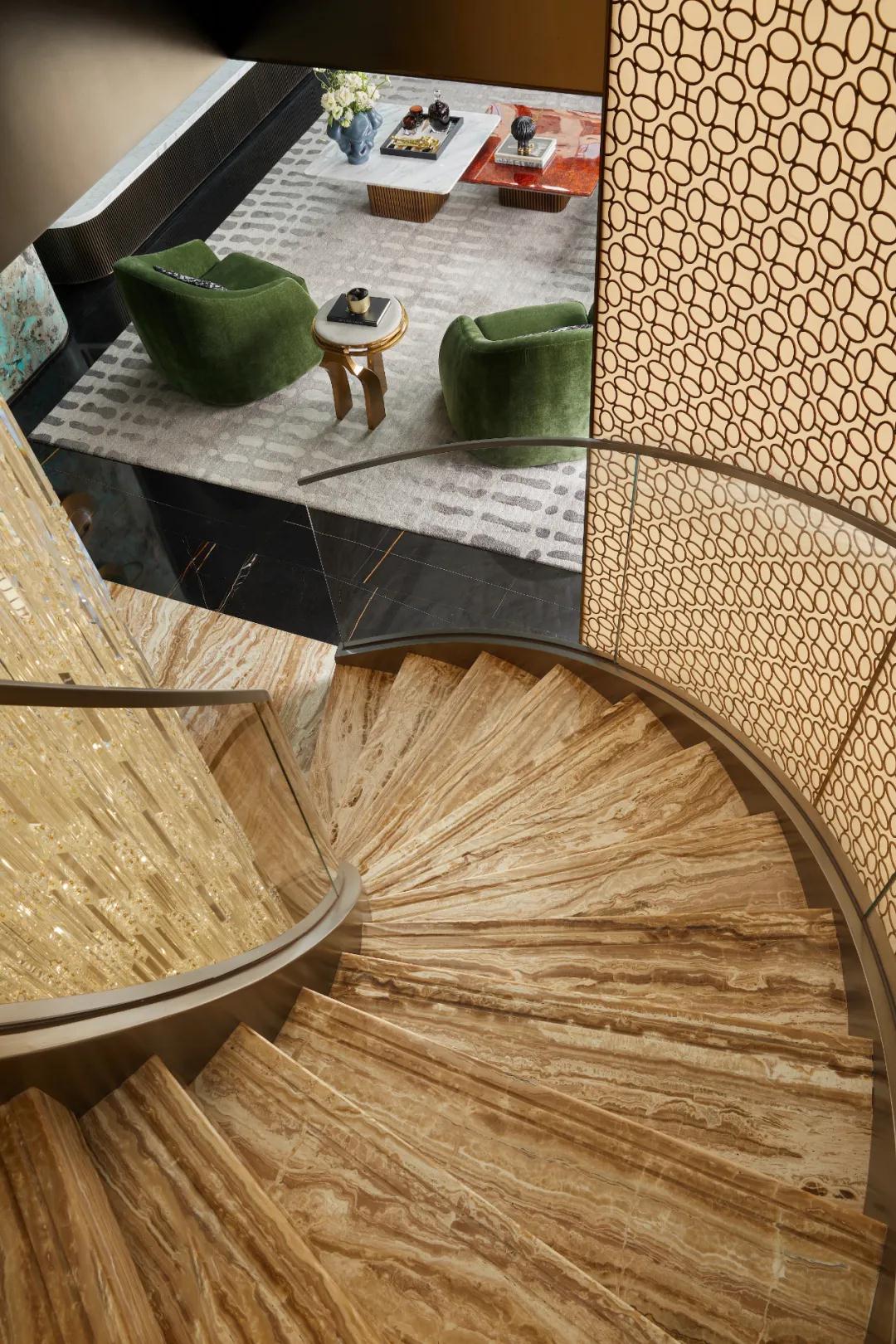 當居(jū)住者從絢麗的樓梯盤旋而上,走向另(lìng)一個空間時,巨大的視覺、氛圍轉(zhuǎn)折,又會帶給身心另(lìng)外一種儀式感和(hé)力(lì)量。