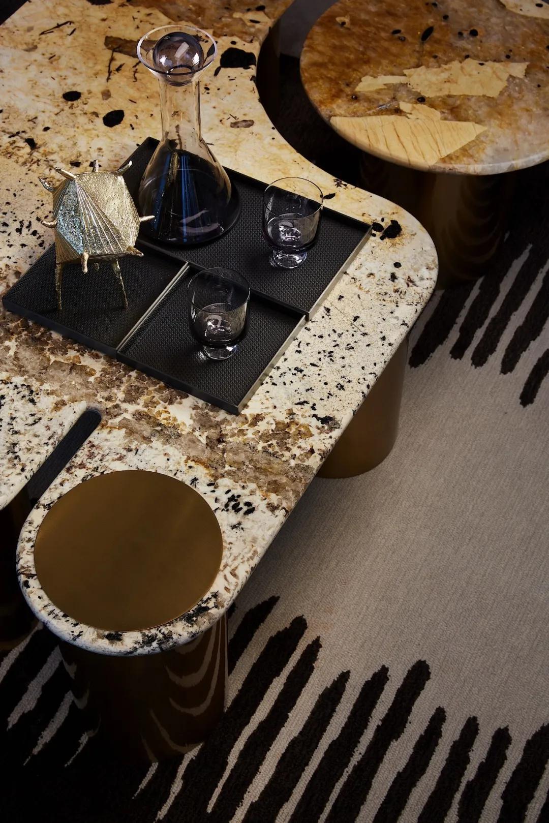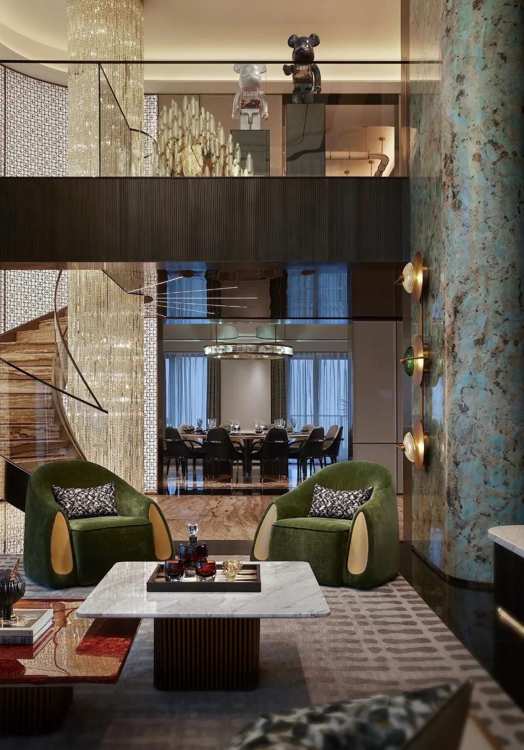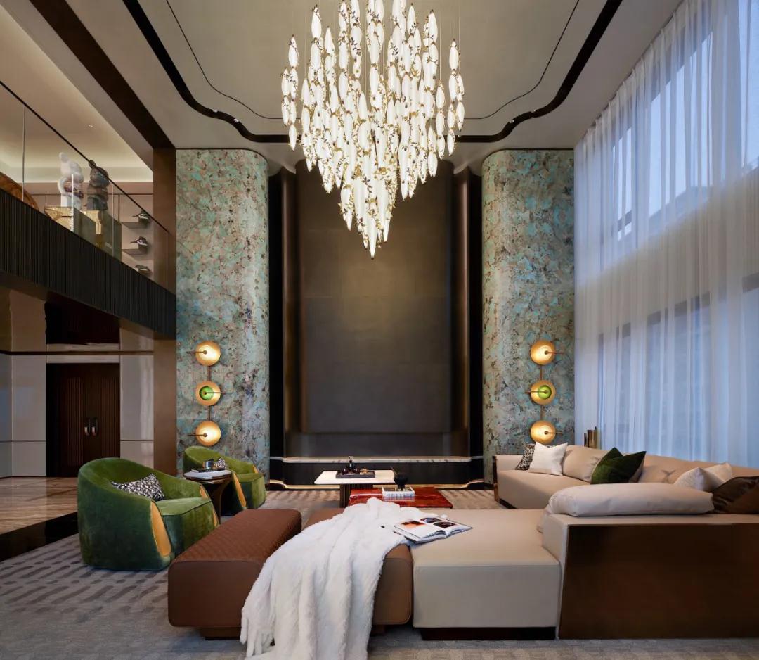 昂貴的亞馬遜綠(lǜ)奢石和複雜的工藝,遵循西方建築設計藝術理念,與金屬、水晶做呼應,兼具功能(néng)主義和美(měi)觀性(xìng);同時以曲麵處理,延伸自然色(sè)彩、元素、紋理,將東方意境中的空靈、輕柔呈現,從宏(hóng)觀角度感受無與倫比的建築創意和奢(shē)華感(gǎn),以細節(jiē)表達微觀思維的藝術性(xìng)、舒適性。