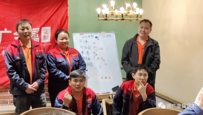 回顧過(guò)往,賽廣(guǎng)金屬·草莓视频在线不鏽鋼的發展突飛猛進,成(chéng)績斐然(rán)。合作項目琳琅滿目,數不勝數,有豪宅(騰衝別墅、普洱觀瀾藝墅、楚雄院子別墅、春城首府(fǔ)、雲璽大宅......),酒店(騰衝東湖溫泉(quán)康養酒店、恒隆君(jun1)悅酒店、大理青石(shí)酒店、玉溪(xī)鉑爾曼酒店、祿豐悅恒酒店、版納菠蘿酒店、盤州月亮(liàng)莊五星級酒店、維也納國際酒(jiǔ)店、老撾(wō)萬(wàn)象新酒店......)、酒吧(昆明海樂城、WAWE酒吧、AKOMA酒吧、星德羅酒吧、緬甸孟能春能酒(jiǔ)吧(ba)......)、會所(緬甸(diàn)孟波保(bǎo)利皇宮、緬甸猛拉九號公館、緬甸果敢亨利娛樂(lè)城......)等諸多案例。正如公(gōng)司文化中(zhōng)闡明的,公司始終堅持“誠信、嚴謹、匠心、創新、高效(xiào)、共贏”的價值觀,並擁(yōng)有“與時俱進,開拓創新(xīn),與人(rén)為本,爭創(chuàng)一流”的精神,勵誌“成為金(jīn)屬(shǔ)裝飾行業領跑者,讓金屬製造不再難做”!我們不忘初心,為了既定目標一直在勇(yǒng)往直前,相信定能克服(fú)萬難(nán)迎來璀璨光輝。走過(guò)臘梅吐芳的冬天,迎來桃紅柳綠的春天。春,意味著朝氣蓬勃,意味著(zhe)生(shēng)生不息,意味著複蘇和希望。在這個春意盎然的時節,公司(sī)舉行了一次慷慨激昂的啟動會·團建活動,不僅能提高團(tuán)隊的凝聚力,又能激(jī)發員工的熱情,豐富業餘生活的同時培養頑強(qiáng)奮鬥,勇於拚搏的優良品質。此次活動於2023年3月11日下午2點準時開(kāi)始,主要(yào)包括(kuò)四(sì)項內容(róng):各自對2023年的計劃與目標,遊(yóu)戲環節,企業(yè)宣言,天堂宴。第一項:各自對2023年的計劃與目標。各位(wèi)呈報人用(yòng)慷慨激昂的陳詞(cí),傳達著自己的期望與壯誌,展望2023,書(shū)寫唯美(měi)的序章。我們立下誓言,用全力以赴的決心迎接挑戰,抱(bào)著不達目標誓不罷休的決(jué)心開啟新的章程。