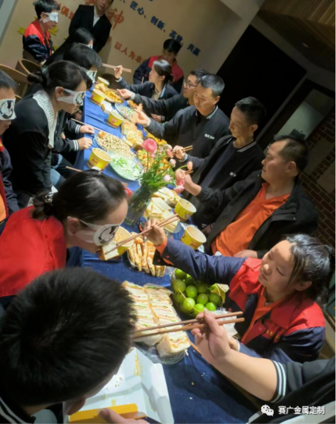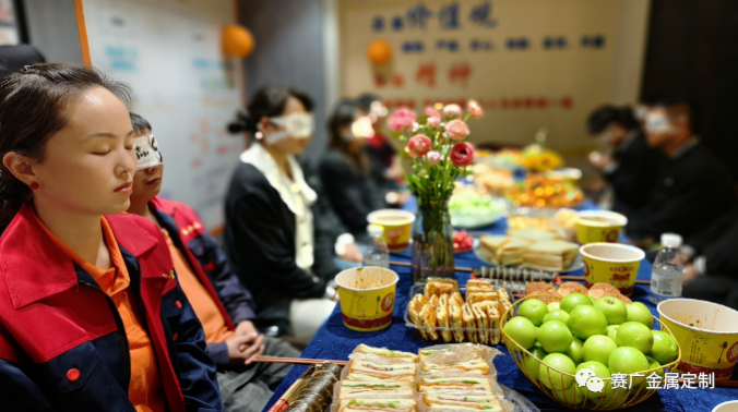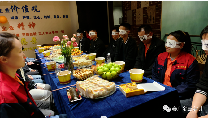 第(dì)四(sì)項:天堂宴環節。全體員工分成A組與B組,A組到三(sān)樓準備食材,B組在(zài)二樓KTV等候,A組配合(hé)準(zhǔn)備(bèi)好食材後到樓下給B組的搭檔蒙上雙眼,把他們安全帶到三樓就座,互(hù)相在搭檔蒙(méng)眼的狀態下把食物喂到對方嘴裏。此環節讓眾人都聯想到了自己的父母與孩子,體會(huì)到為人(rén)母的(de)不易。無論(lùn)何時,我們都(dōu)要擁有一顆感恩的心,對(duì)親人、朋(péng)友、同事、公司、合作夥伴都要心存感恩。再者,我們在(zài)不知道如何應對困難(nán)的時候,應該無條件信任我們的合夥人,信(xìn)任的力(lì)量無(wú)窮(qióng)大,收獲也會頗豐。