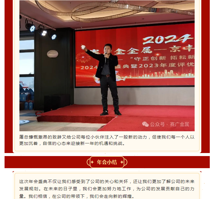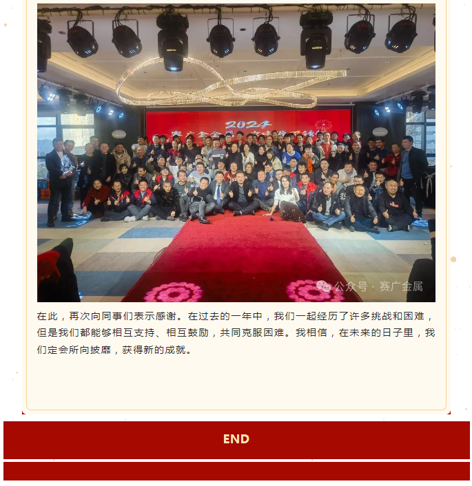 這次年會盛典不(bú)僅讓我們感(gǎn)受(shòu)到了公(gōng)司的關心和關懷,還(hái)讓我們更加了解公司的(de)未來發展規劃(huá)。在未來的日子裏,我們(men)會更加努(nǔ)力地工作,為公司的發展貢獻自己(jǐ)的力量。我們相信,在公司的帶領下,我們會走向新的(de)輝煌。