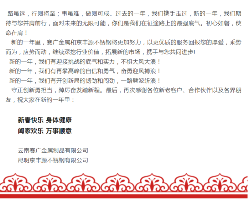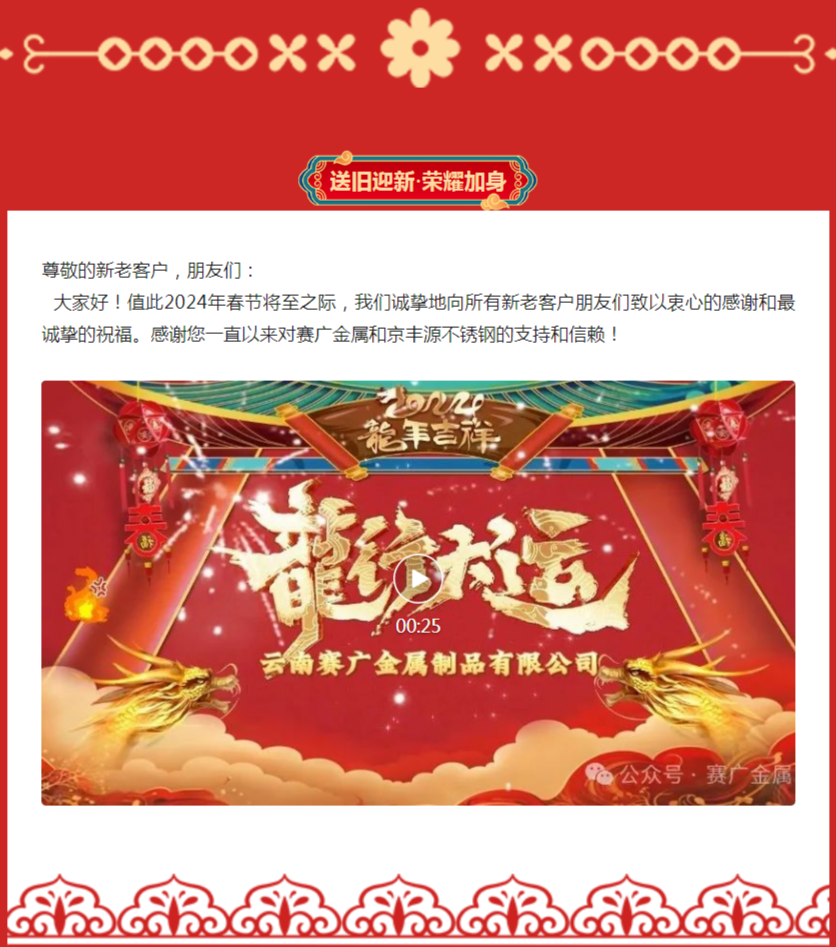 上一篇:賽廣金屬2024年春節放假(jiǎ)通知
